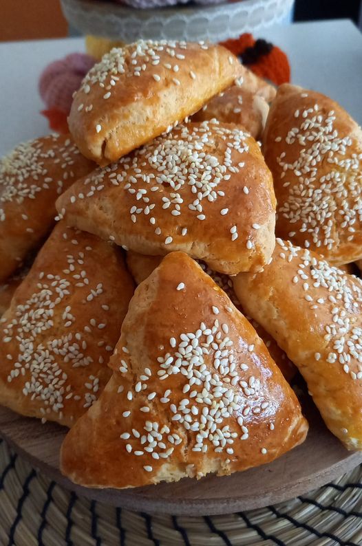 Τοποθετούμε σε ταψί με λαδόκολλα, κάνουμε επάλειψη με τον κρόκο, ρίχνουμε σουσάμι εάν θέλουμε και ψήνουμε σε προθερμασμένο φούθρνο στους 180 βαθμούς μέχρι να ροδίσουν περίπου 40 με 45 λεπτά ανάλογα με τον φούρνο.
