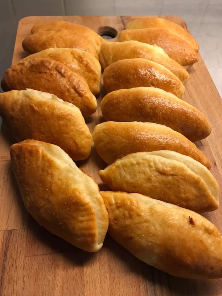 Φτιάχνω το ζυμάρι και το αφήνω να ξεκουραστεί μόλις φουσκώσει ανοίγω ζυμαράκι γεμίζω περνάω με αυγό και ψήνω στους 180 βαθμούς στις αντιστάσεις για σαράντα με πενήντα λεπτά !!!!