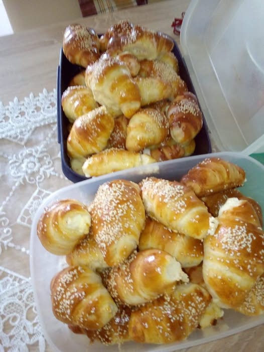Μέσα έβαλα τυρί και γαλοπούλα τα αλοιφω με κρόκο και λίγο σουσάμι τα ψήνουμε σε εκατό ογδόντα βαθμούς Κελσίου αέρα μέχρι να ροδίσουν περίπου 20 λεπτά ανάλογα με το φούρνο σας