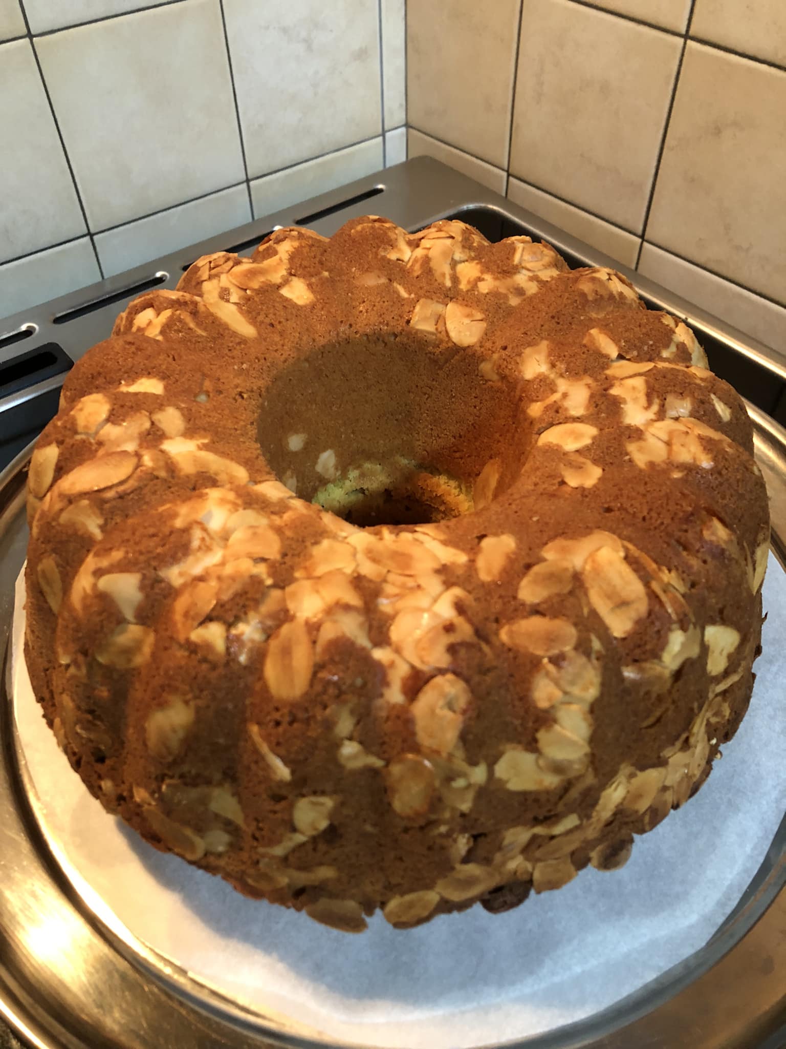 Έτοιμο και το κέικ υπέροχο και μυρίζει φανταστικά για ένα ταψί 22αρι έβαλα 4 αυγά ένα γιαουρτάκι στραγγιστό 200γρ 1 βιτάμ soft 250 γρ 300γρ ζάχαρη .400γρ φαρίνα .μισή κοφτη κουταλιά κακουλέ μία κουταλιά του γλυκού μαχλέπι και λίγο μαστίχα Χίου κοπανισμένη μία βανίλια και ένα κουταλάκι baking και λίγο σουσάμι από πάνω η αμύγδαλο