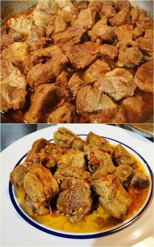 Βάζω τα κομμάτια του κρέατος σε λίγο λάδι στο τηγάνι και αφήνω να τσιγαριστούν απ’ όλες τις μεριές καλά.