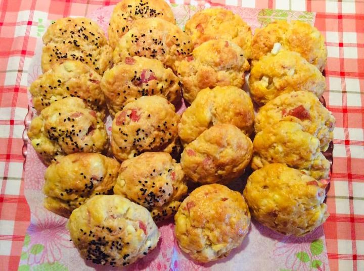 Τα ανακατεύουμε όλα μαζί και τα πλάθουμε, από πάνω τα αλείφουμε με αυγό.