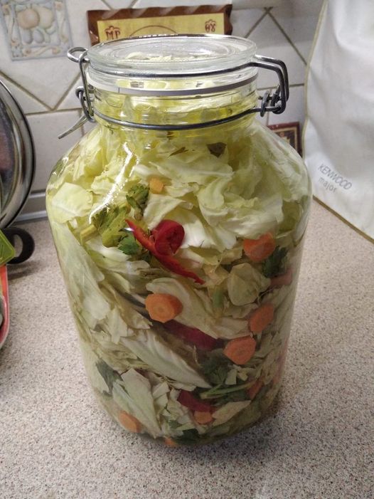 Αρχικά, ετοιμάζουμε τα λαχανικά και τα πλένουμε καλά. Στη συνέχεια, τα κόβουμε σε κομματάκια και γεμίζουμε το βάζο μας.