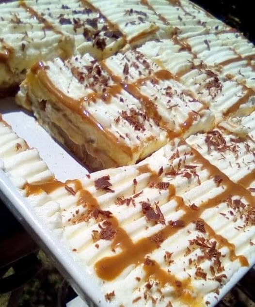 2 κουτια ζαχαρουχο καραμελωμενο γαλα,500 γρ κρεμα.γαλακτος πληρες πολυ παγωμενη χτυπημενη σε σφιχτη σαντιγι με λιγο αχνη!