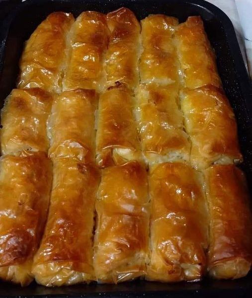 Υλικά -1 πακ. φύλλο κρούστας -1 λίτρο γάλα -1 φλ. ζάχαρη -180 γρ. σιμιγδάλι ψιλό -3 αυγά -200 γρ. βούτυρο αγελάδος λιωμένο και κρύο για τα φύλλα + 50 γρ. για την κρέμα -1 βανίλια -ξύσμα από ένα λεμόνι Συνεχίστε την ανάγνωση στην επόμενη σελίδα