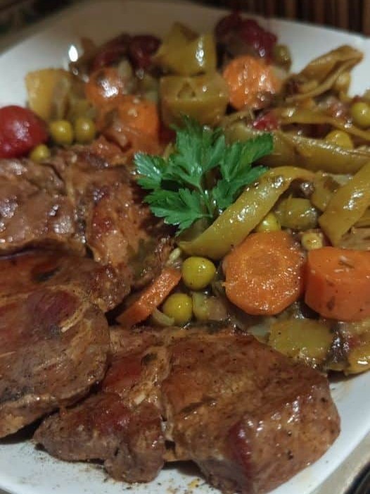 ΥΛΙΚΑ – ΕΚΤΕΛΕΣΗ Μισό κιλό χοιρινά μπριζολάκια λαιμού αλατοπιπερωμένα, τα σοτάρω σε λίγο ελαιόλαδο να τσιγαριστούν καλά. Σε κατσαρόλα με ελαιόλαδο, τσιγαρίζω 1 μεγάλο κρεμμύδι χοντροκομμένο, 2 σκ. σκόρδο με 1 κτσ. κοφτή ζάχαρη και 2 καρότα σε ροδέλες. Προσθέτω μία κονσέρβα αποφλειωμένα ντοματάκια, 1 φρ. ντομάτα τριμμένη και 1-2 χούφτες αρακά κατεψυγμένο. Λιγο νεράκι … Read more