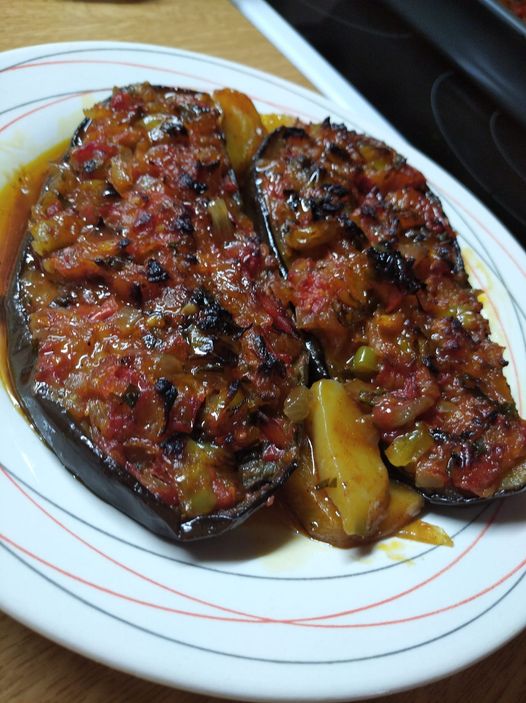 ΥΛΙΚΑ – ΕΚΤΕΛΕΣΗ Εκοψα τις μελιτζάνες στην μέση, τις αλάτισα, έριξα λάδι και τις έβαλα στον φούρνο να ψηθούν. Σ’ ένα βαθύ τηγάνι έκοψα κρεμμύδια ξερά σε φέτες, σκόρδο και τα σωταρησα στο λάδι μέχρι να γυαλίσει το κρεμμύδι. Εβαλα αλάτι, πιπέρι, μαύρο και κόκκινο, και λίγο ζάχαρη, ψιλοκομμένο μαϊντανό, ντομάτες ώριμες τριμμένες, πιπεριές πράσινες … Read more