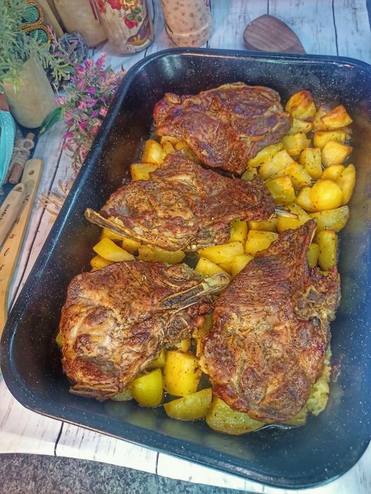 Μπριζόλες με λεμονάτες πατάτες στο φούρνο -Λιώνουν στο στόμα!!!